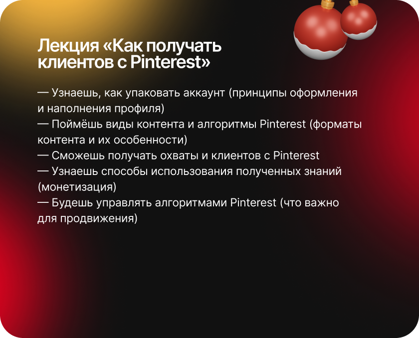 а каждому, кто купил программу по новогодней акции, доступны все бонусы (кроме скидок)