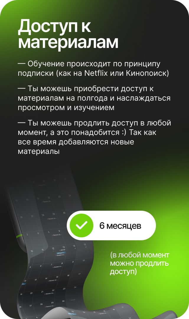 Ты не будешь ночами сидеть над домашкой и трястись из-за пропущенного дедлайна: все материалы в клубе небольшие, а обучение идет в комфортном темпе!